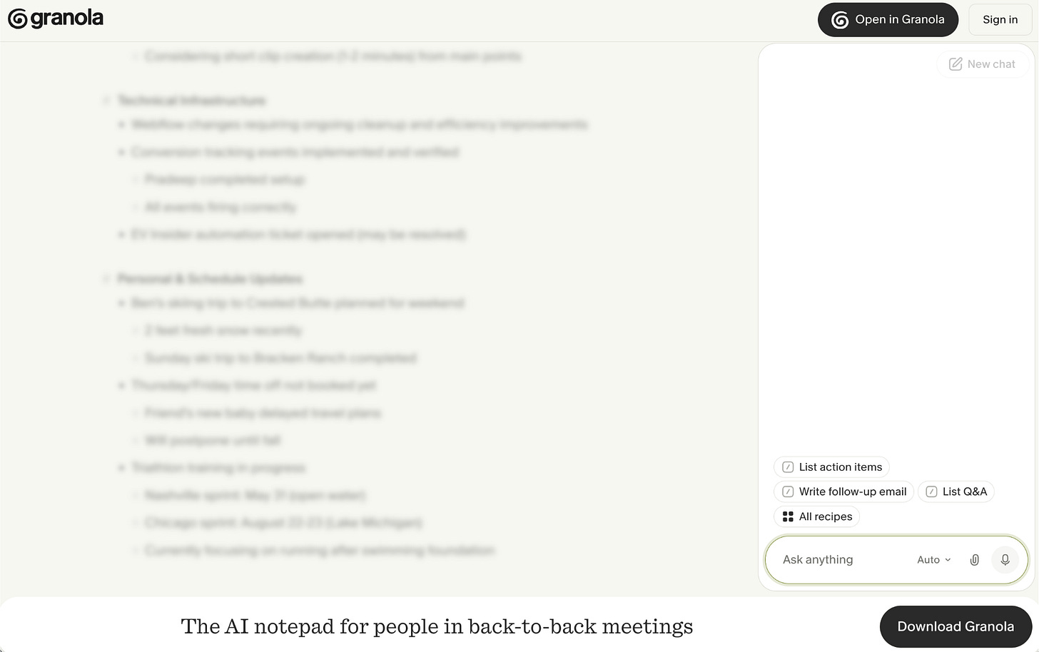 Since Granola researched you based on your contact info, and can tailor responses to your role and professional context, the insights tend to be incredibly impressive.