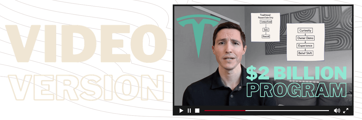 Rather than getting lost in the rewards and incentives, which are interesting but not novel, let’s dissect how Tesla turned its early customers into category educators, not just a sales channel.