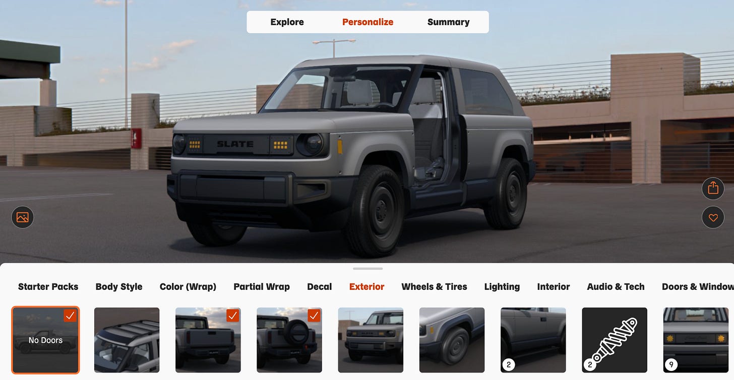 It is creating a configurable vehicle. While incumbents and DTC startups ask which package (trim) you want, Slate asks: “What do you actually need to get from here to there?”